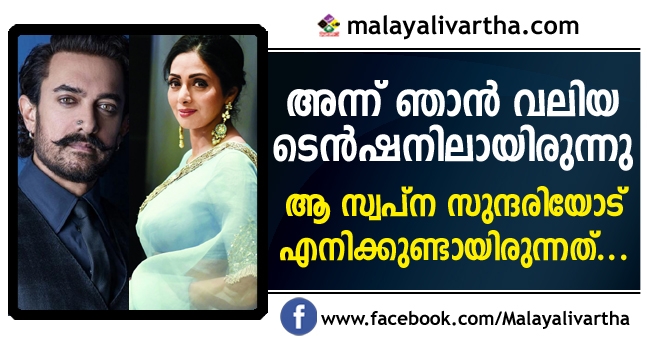 പണ്ട് ശ്രീദേവിയുമായി ആമിര് ഒരു ഫോട്ടോ ഷൂട്ട് ചെയ്തിട്ടുണ്ട്. ആമിര് അന്നൊരു തുടക്കക്കാരന്, അവരാകട്ടെ ബോളിവുഡിലെ സ്വപ്ന സുന്ദരി. അതുകൊണ്ട് തന്നെ അന്ന് വലിയ ടെന്ഷനിലായിരുന്നു. കാരണം ആമിര് ശ്രീദേവിയുടെ മുന്നില് എത്തിയാല് രണ്ട് സെക്കന്റ് പോലും അവര്ക്ക് വേണ്ടി വരില്ല, ആമിറിന് അവരോടുള്ള പ്രണയം തിരിച്ചറിയാന്. അത്രയ്ക്കായിരുന്നു ആരാധനയും സ്നേഹവും.' ഇന്ന് 53 തികയുന്ന ബോളിവുഡ് താരം ആമിര് ഖാന് ഒരു അഭിമുഖത്തില് വെളിപ്പെടുത്തിയതാണിത്.