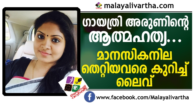 ഗായത്രി അരുണ് ആത്മഹത്യ ചെയ്തു; ഫെയ്സ്ബുക്ക് ലൈവില് എത്തി ജീവനോടെയുണ്ടെന്ന് പ്രതികരിച്ച് താരം...