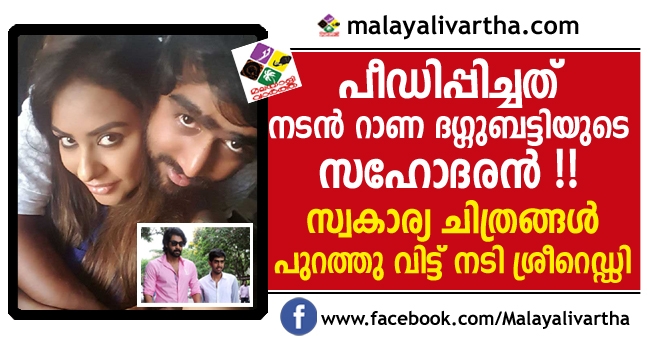 തെലുങ്ക് സിനിമാലോകത്തെ ഞെട്ടിച്ച് വീണ്ടും ശ്രീറെഡ്ഡിയുടെ വെളിപ്പെടുത്തൽ ; തന്നെ പീഡിപ്പിച്ചത് നടന് റാണ ദഗ്ഗുബട്ടിയുടെ സഹോദരനെന്ന് താരം ; സ്വകാര്യ ചിത്രങ്ങൾ പുറത്തു വിട്ട് നടി ശ്രീറെഡ്ഡി