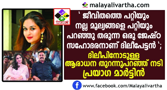 "ഒരു സഹപ്രവർത്തകൻ എന്നതിലുപരി ഒരു ജ്യേഷ്ഠസഹോദരനാണ് ദിലീപേട്ടൻ" ; രാമലീല ചിത്രത്തിന്റെ ആഘോഷവേദിയിൽ ദിലീപിനോടുള്ള ആരാധന തുറന്നുപറഞ്ഞ് പ്രയാഗ
