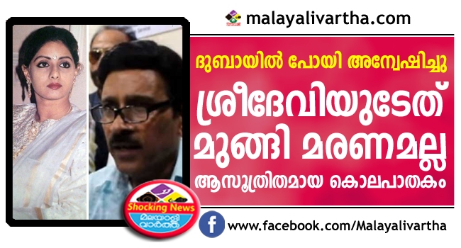 ശ്രീദേവിയുടെ 240 കോടി ഇൻഷുറൻസ് തട്ടിയെടുക്കാനുള്ള ആസൂത്രിത കൊലപാതകമെന്ന സുനില് സിങിന്റെ വാദത്തിന് ശേഷം ശ്രീദേവിയുടേത് സ്വാഭാവിക മരണമല്ല, ആസൂത്രിതമായ കൊലപാതകമെന്ന് ഉറപ്പിച്ച് ആരോപണങ്ങളുമായി മുന് ഡല്ഹി പൊലീസ് എസിപി