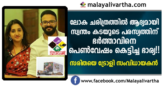 സിനിമയ്ക്ക് വേണ്ടി ഭർത്താവിന് കോസ്റ്റ്യൂം ഡിസൈന് ചെയ്തു... ഇപ്പോൾ സ്വന്തം കടയുടെ പരസ്യത്തിന് ജയസൂര്യയെ പെൺവേഷം കെട്ടിച്ച് സരിത; സോഷ്യൽ മീഡിയയിൽ വൈറലായി പരസ്യബോര്ഡിലെ മേരിക്കുട്ടി