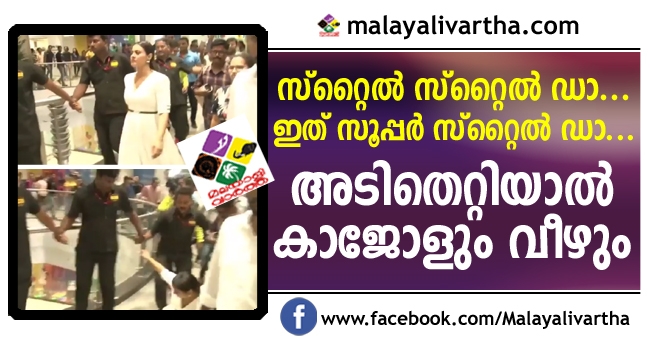 വീഴ്ചകളേറ്റുവാങ്ങാന് വീണ്ടും കാജോൾ ; മുംബൈ ഫൊറിണിക് മാളിലെ പരിപാടിക്കിടെ കാലിലെ ചെരുപ്പ് ചതിച്ചപ്പോൾ ആരാധകര്ക്ക് മുന്നില് തെന്നിവീണ് നടി കജോള്