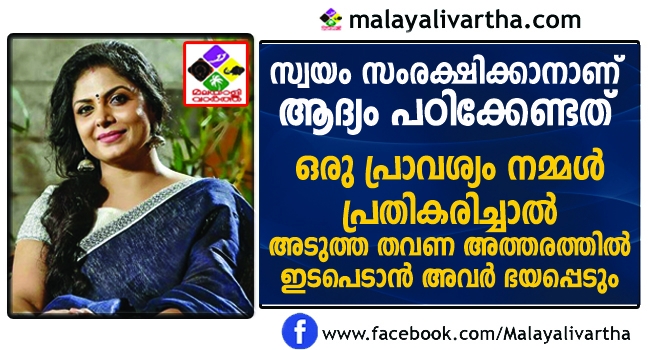 എവിടെയാണെങ്കിലും സ്വയം സരംക്ഷിക്കാനാണ് ആദ്യം പഠിക്കേണ്ടത്. ഒരു പ്രാവശ്യം നമ്മള് പ്രതികരിച്ചാല് അടുത്തതവണ അത്തരത്തില് ഇടപെടാന് അവര് ഭയപ്പെടുമെന്ന് താരം പറഞ്ഞു.