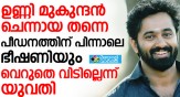 നടന് ഉണ്ണി മുകുന്ദനെതിരായ പീഡനാരോപണം... കൂടുതല് വെളിപ്പെടുത്തലുമായി യുവതി രംഗത്ത്, കേസില്നിന്നും പിന്മാറില്ലെന്നും യുവതി