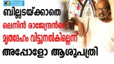 ചികിത്സാചെലവ് മുഴുവനായി അടയ്ക്കാതെ മൃതദേഹം നൽകാനാകില്ലെന്നാണ് ആശുപത്രിയുടെ നിലപാട്. ലെനിൻ രാജേന്ദ്രന്റെ ചികിത്സയ്ക്കായി 72 ലക്ഷം രൂപ ചെലവുവന്നതായാണ് അപ്പോളോ ആശുപത്രി അധികൃതർ വിശദീകരിക്കുന്നത്. മുഖ്...
