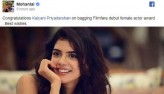 മികച്ച പുതുമുഖ നടിക്കുള്ള ഫിലിം ഫെയര് പുരസ്കാരം ലഭിച്ച കല്യാണി പ്രിയദര്ശന് ആശംസകളുമായി മോഹന്ലാല്