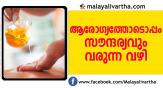 ദൈവത്തിന്റെ സൃഷ്ടികളിൽ ഏറ്റവും സുന്ദരമായത് മനുഷ്യനാണെന്ന് പറയാം .ഈ സൗന്ദര്യം നിലനിർത്തുന്നത് ഒരു പരിധി വരെ ചിട്ടയായ ജീവിതവും ആരോഗ്യ സംരക്ഷണവുമാണ് . നമ്മൾ കഴിക്കുന്ന ഭക്ഷണവും ശീലങ്ങളും സൗന്ദര്യത്തെയും ...