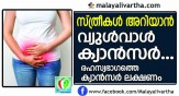 വ്യുള്വാള് ക്യാന്സര് -വ്യുള്വ എന്ന ഭാഗം വജൈന, യൂറീത്ര, ലേബിയ, ക്ലിറ്റോറിസ് എന്നീ ഭാഗങ്ങളെ ചുറ്റുന്ന സ്കിന് ഭാഗമാണ്. വജൈനയുടെ അകത്തേയും പുറത്തേയും ലിപ്സ്, വജൈനയിലെ ഓപ്പണിംഗ്, ക്ലിറ്റോറിസ്, വജൈന...