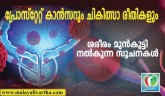 കാൻസർ പല തരമുണ്ട്. മുൻകൂട്ടി അറിഞ്ഞാൽ പൂർണമായും കാന്സറിനെ ചികിത്സിച്ചു മാറ്റാന് പല മാര്ഗങ്ങളും ഇപ്പോള് നിലവിലുണ്ട്.രോഗം പൂര്ണമായി മാറിയില്ലെങ്കിലും ചികിത്സ കൊണ്ടു സാധാരണ ജീവിതം നയിക്കാം. ഇന്ത്യയി...