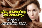 പെണ്കുട്ടികള്ക്ക് അഴക് നീളമുളള മുടിയാണ്. കാല്മുട്ടുവരെ നീണ്ടുകിടക്കുന്ന മുടിയഴകിനെകുറിച്ച് കവികള് പോലും വര്ണ്ണിച്ചിട്ടുണ്ട്. ആഴകും ആരോഗ്യവുമുളള ഇടതൂര്ന്ന തലമുടി ആഗ്രഹിക്കാത്ത പെണ്കുട്ടികള് ഇല്...
