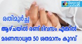 വര്ഷത്തില് 350 തവണ രതിമൂര്ച്ഛ അനുഭവിക്കുന്ന പുരുഷന്മാര് മറ്റുള്ളവരെ അപേക്ഷിച്ച് ശരാശരി നാലു വര്ഷം കൂടുതല് ജീവിക്കുമെന്നു പഠന റിപ്പോർട്ട് ..ആഴ്ചയില് ഒരു തവണയെങ്കിലും രതിമൂര്ച്ഛയുണ്ടാവുന്ന സ്ത്രീകളില് ഹൃദ്രോഗസാധ്യത 30% കുറയും