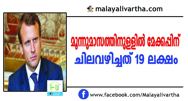 പുറത്തു വരുന്ന രേഖകള് പ്രകാരം മക്രോണിന്റെ മേക്അപ് സേവനങ്ങള്ക്കായി ഒരു ആര്ട്ടിസ്റ്റിനെ രണ്ടുതവണയായി നിയോഗിച്ചിരുന്നു. ആദ്യത്തെ തവണ ഏഴു ലക്ഷത്തില്പ്പരം രൂപയും രണ്ടാമത്തെ പ്രാവശ്യം പന്ത്രണ്ടു ലക്ഷവുമാണു നല്കിയിരുന്നത്. വാര്ത്താ സമ്മേളനങ്ങള്ക്കും മറ്റു പൊതുപരിപാടികള്ക്കും യാത്രകള്ക്കുമൊക്കെ പോകുംമുമ്പു സുന്ദരനാകാന് വേണ്ടിയായിരുന്നു ഈ ചിലവഴിച്ചതൊക്കെയും.ലോകത്തു തന്നെ ഇത്ര ഇളം പ്രായത്തില് ശക്തമായൊരു രാജ്യത്തിന്റെ അധിപനായി മക്രോണിനെപ്പോലെ ഒരാള് വരുന്നത് അപൂര്വമാണ്.