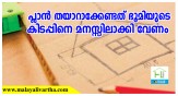 മനസ്സിനിണങ്ങുന്ന സ്ഥലം ലഭ്യമാക്കിക്കഴിഞ്ഞാല് ഒരു പ്ലാനും എസ്റ്റിമേറ്റും ഉണ്ടാക്കുവാന് എന്ജിനീയറെത്തന്നെ സമീപിക്കുന്നതാണ് ഉചിതം. സ്വന്തം ബജറ്റും കെട്ടിടത്തെ സംബന്ധിച്ച കാഴ്ചപ്പാടുകളും ആ അവസരത്തില്ത...