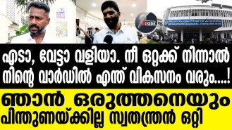 'എടാ, വേട്ടാ വളിയാ. നീ ഒറ്റക്ക് നിന്നാൽ നിന്റെ വാർഡിൽ എന്ത് വികസനം വരും....!ഞാൻ ഒരുത്തനെയും പിന്തുണയ്ക്കില്ല സ്വതന്ത്രൻ ഒറ്റി