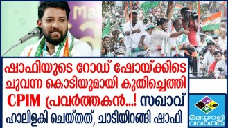 അനൗൺസ്മെന്റ് വാഹനത്തിൽ പോറ്റിയെ കേറ്റിയെ ഗാനം ; ഷാഫി പറമ്പിൽ എംപിയുടെ റോഡ് ഷോയ്ക്കിടെ ചുവന്ന കൊടിയുമായി കുതിച്ചെത്തി സിപിഐഎം പ്രവർത്തകൻ...! പിന്നാലെ സംഭവിച്ചത്