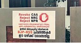 പൗരത്വഭേദഗതി നിയമം, പൗരത്വ രജിസ്റ്റര്, ജനസംഖ്യാ രജിസ്റ്റര് എന്നിവയും മേയ്ച്ചോണ്ട് ബി.ജെ.പി- ആര്.എസ്.എസ് പ്രവര്ത്തകര് ഈ വഴിക്ക് വരേണ്ടതില്ല, കോഴിക്കോട് കാരാടി വില്ലേജിലെ 350തോളം വീടുകള്ക്ക് മുന്നിലാണ് ഈ ബോര്ഡ് സ്ഥാപിച്ചിട്ടുള്ളത്