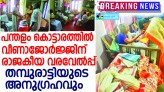 ശബരിമല യുവതീപ്രവേശനത്തെ തുടര്ന്ന് സര്ക്കാരിനും സി.പി.എമ്മിനും എതിരെ വാളോങ്ങിയ പന്തളം കൊട്ടാരം എല്.ഡി.എഫ് സ്ഥാനാര്ത്ഥി വീണാജോര്ജ്ജിന് രാജകീയ വരവേല്്പ്പും അനുഗ്രഹവും നല്കി