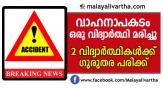പോത്തന്കോടിന് സമീപമുണ്ടായ വാഹനാപകടത്തില് കുടവൂര് സ്വദേശി ജിതിന്ലാല് (17) മരണമടഞ്ഞു. അജ്മല് (17) പള്ളിനട, വിപിന് (17) ശ്രീനാരായണപുരം എന്നീ വിദ്യാര്ത്ഥികള്ക്ക് ഗുരുതര പരുക്കേറ്റ നിലയില് മെഡിക്...