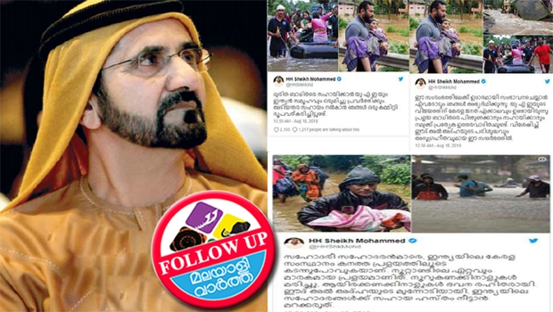 കേരളം പ്രളയത്തിലൂടെ കടന്നു പോവുകയാണെന്നും പുണ്യമാസത്തില് ഇന്ത്യയിലെ സഹോദരങ്ങള്ക്ക് സഹായ ഹസ്തം നീട്ടാന് മറക്കരുത്... ദുരിതബാധിതരെ സഹായിക്കണമെന്ന് അഭ്യര്ത്ഥിച്ച് യുഎഇ ഭരണാധികാരി