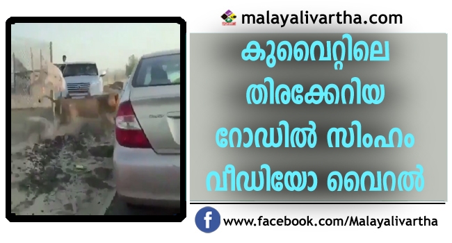 തിരക്കേറിയ റോഡില് സിംഹം കുവൈറ്റില് നിന്നുള്ള വീഡിയോ വൈറലാകുന്നു സിംഹത്തെ കണ്ടത് കബാദ് ജില്ലയിലെ റസിഡന്ഷ്യല്