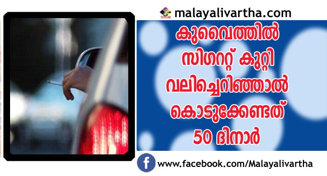 കുവൈത്തില് സിഗററ്റ് കുറ്റി വലിച്ചെറിഞ്ഞാല് കൊടുക്കേണ്ട്ത് 50 ദിനാര്; മാലിന്യങ്ങള് നിക്ഷേപിക്കാന് സ്ഥാപിക്കപ്പെട്ടിട്ടുള്ള തൊട്ടികളില് തന്നെ നിക്ഷേപിക്കണം. അല്ലെങ്കില് പിഴ അടയ്ക്കുകയോ പ്രോസിക്യൂഷന് നടപടികള് നേരിടുകയോ മാത്രമാണ് വഴിയുള്ളൂ