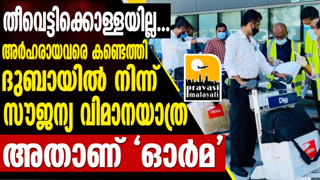 180 യാത്രക്കാരുമായി ദുബായിൽ നിന്ന് 'ഓർമ'യുടെ സൗജന്യ വിമാനം; യാത്രക്കാർക്കു പിപിഇ കിറ്റും ഭക്ഷണവും സൗജന്യമായി തന്നെ നൽകി