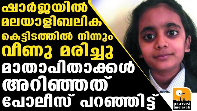 ഷാര്ജയില് മലയാളി വിദ്യാര്ത്ഥിനി കെട്ടിടത്തില് നിന്ന് വീണു മരിച്ച നിലയില്; മാതാപിതാക്കൾ അറിഞ്ഞത് പോലീസ് എത്തിയിട്ട്