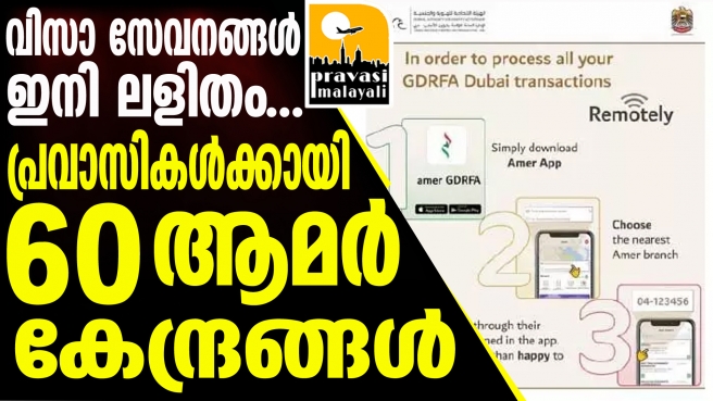 പ്രവാസികൾക്കായി സുതാര്യമായ വിസ സേവനങ്ങൾക്ക് ദുബൈയിൽ 60 ആമർ കേന്ദ്രങ്ങൾ പ്രവർത്തിക്കുന്നുണ്ടെന്ന് ജനറൽ ഡയറക്ടറേറ്റ് ഓഫ് റസിഡൻസി ആൻഡ് ഫോറിനേഴ്സ് (ജി.ഡി.ആർ.എഫ്.എ) അറിയിക്കുകയുണ്ടായി. ഇതേതുടർന്ന് വിസ സംബന്ധിച്ച മുഴുവൻ നടപടിക്രമങ്ങൾ പൂർത്തിയാക്കാനും എല്ലാ സേവനങ്ങളും ലഭിക്കാനും ഈ സെന്ററുകൾ സഹായമാകുമെന്ന് ജി.ഡി.ആർ.എഫ്.എ മേധാവി മേജർ ജനറൽ മുഹമ്മദ് അഹ്മദ് അൽ മറിവ്യക്തമാക്കുകയുണ്ടായി.