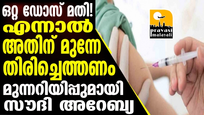 പ്രവാസികൾക്ക് മുന്നറിയിപ്പ് നൽകി സൗദി അറേബ്യ; ഒരു ഡോസ് വാക്സിൻ മാത്രം സ്വീകരിച്ച് 14 ദിവസം പിന്നിട്ടവർക്കും സൗദിയിലേക്ക് തിരിച്ച് വരുമ്പോൾ ഇൻസ്റ്റിറ്റിയൂഷണൽ ക്വാറന്റൈൻ ആവശ്യമില്ല, പ്രവാസികൾക്ക് ഈ നിബന്ധന ബാധകം