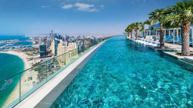 ഒളിമ്പിക്സിൽ ഉപയോഗിക്കുന്ന പൂളിന്റെ ഇരട്ടിയോളം വലിപ്പം വരും ഈ പൂളിന്. ഇവിടെ നിന്ന് കറങ്ങി നോക്കിയാല് ബുര്ജുല് അറബും പാം ജുമൈറയും ഐന് ദുബൈയുമെല്ലാം ഒറ്റ സീനില് കാണാം. ഹോട്ടല് ഗസ്റ്റുകളായ 21 വയസിന് മുകളിലുള്ളവര്ക്കാണ് പ്രവേശനം.