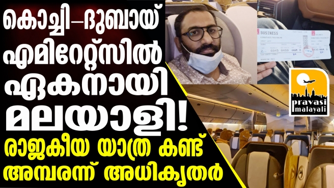 ആരെയും അമ്പരപ്പിക്കും രാജകീയ യാത്ര; വിശാലമായ എമിറേറ്റ്സ് ബോയിങ് 777-300 വിമാനത്തിൽ കൊച്ചിയിൽ നിന്ന് ദുബായ് വരെ ഏകനായി മലയാളി വ്യവസായി യാസീൻ ഹസ്സൻ, പറന്നിറങ്ങിയത് ചരിത്രത്തിലേക്ക്...