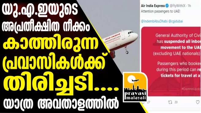 ഏറെ ആശങ്കയായി ആ വാർത്ത; ഇന്ത്യയില് നിന്നുള്ളവരുടെ യാത്രാവിലക്ക് വീണ്ടും നീട്ടി യുഎഇ അധികൃതര്, ജൂലൈ ആറു വരെ നീട്ടിയതായി എയർ ഇന്ത്യ എക്സ്പ്രസ്സ്