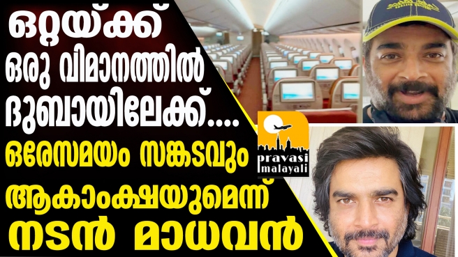 കൊറോണ വ്യാപനത്തിന് പിന്നാലെ വിലക്ക് പ്രഖ്യാപിച്ച് യുഎഇ എത്തിയപ്പോൾ ഏതുവിധേനയും എത്തിച്ചേരണമെന്ന പ്രാർത്ഥന മാത്രമായിരുന്നു പ്രവാസികൾക്ക്. നിരന്തര അഭ്യർത്ഥന മൂലം യുഎഇ അയയുന്ന കാഴ്ചയാണ് കാണുന്നത്. എങ്കിലും കടുത്ത നിബന്ധകൾ പ്രവാസികളെ വളയ്ക്കുന്നുണ്ട്. ഇത്തരം നിബന്ധനകൾ മൂലം ഒറ്റയ്ക്ക് ഒരു വിമാനത്തിൽ യാത്ര ചെയ്യേണ്ടിവരുന്നവരെയും നമുക്ക് കാണുവാൻ സാധിക്കും. എപ്പിഴിതാ അത്തരത്തിൽ അനുഭവം പങ്കുവച്ചുകൊണ്ട് എത്തിയിരിക്കുകയാണ് നടൻ മാധവൻ....