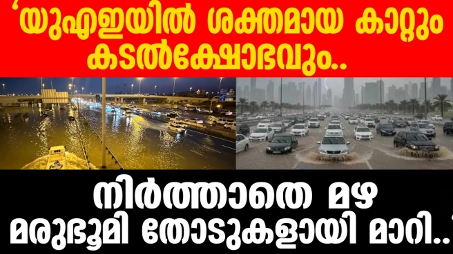 യുഎഇയിൽ ശക്തമായ കാറ്റും കടൽക്ഷോഭവും.. നിർത്താതെ മഴ!! മരുഭൂമി തോടുകളായി മാറി..