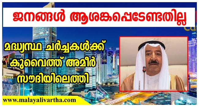 ഖത്തറിനുമേല് ഏര്പ്പെടുത്തിയ ഉപരോധത്തിലൂടെ ഗള്ഫ് മേഖലയില് ഉടലെടുത്ത പ്രതിസന്ധി പരിഹരിക്കുന്നതിനായുള്ള മദ്ധ്യസ്ഥ ചര്ച്ചകള്ക്കായി കുവൈറ്റ് അമീര് ഷെയ്ഖ് സബാഹ് അല് അഹമ്മദ് അല് ജാബര് അല് സബാഹ് സൗദിയിലെത്തി. സൗദി തലസ്ഥാനമായ റിയാദിലെത്തിയ ഇദ്ദേഹം മക്ക ഗവര്ണറുമായും സൗദി ഭരണാധികാരി സല്മാന് രാജാവുമായും പ്രാഥമിക ചര്ച്ചകള് നടത്തിയതായാണ് സൂചന. എന്നാല് ഇതു സംബന്ധിച്ച കൂടുതല് വിവരങ്ങള് പുറത്തുവിട്ടിട്ടില്ല.