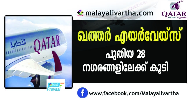 28 പുതിയ നഗരങ്ങളിലേക്ക് കൂടി സർവീസ് തുടങ്ങി ഖത്തർ എയര്വേയ്സ്