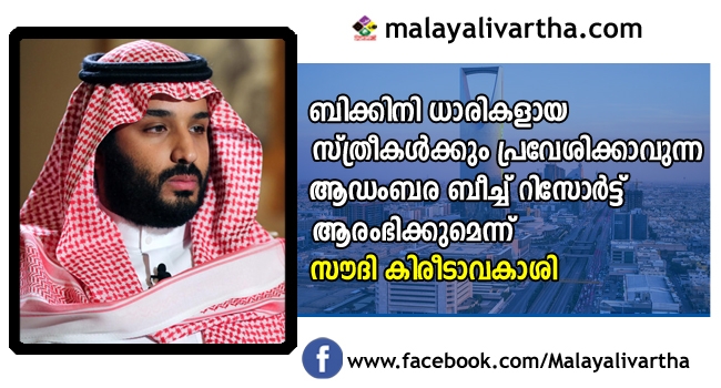 സ്ത്രീകള്ക്ക് സ്വതന്ത്രമായി വസ്ത്രം ധരിക്കാന് അനുമതി നല്കുന്ന ബീച്ച് റിസോര്ട്ട് ആരംഭിക്കുമെന്ന് സൗദി കിരീടാവകാശി