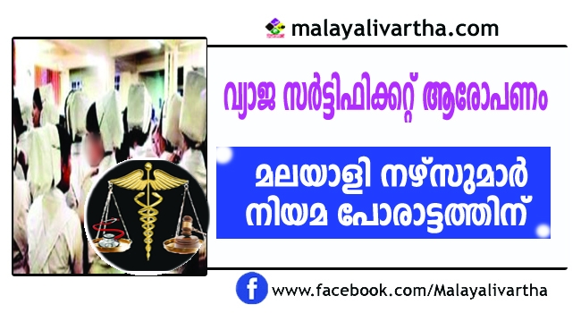വ്യാജ പ്രവര്ത്തി പരിചയ സര്ട്ടിഫിക്കറ്റ് ഹാജരാക്കിയ കുറ്റത്തിന് ദമാം,അല് ഖോബാര് എന്നീ ആശുപത്രികളില് ജോലി ചെയ്തിരുന്ന മലയാളി നഴ്സുമാരെ സൗദി ആരോഗ്യ മന്ത്രാലയം ജയിലില് അടച്ച നഴ്സുമാര് നിയമ പോരാട്ടത്തിനൊരുങ്ങുന്നു. അഡ്വക്കെറ്റിനെ നിയമിച്ച് നിയമപരമായി ഇതിനെ നേരിടാനാണ് നഴ്സുമാര് ഒരുങ്ങുന്നത്. എംബസ്സി ക്രിയാത്മകമായി ഇടപെട്ടാല് പ്രശ്നം രമ്യമായി പരിഹരിക്കപ്പെടും എന്ന പ്രതീക്ഷയിലാണ് മലയാളി നഴ്സുമാര്.