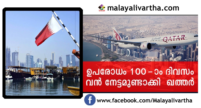 ജൂണ് അഞ്ചിനാണ് ഉപരോധം ആരംഭിച്ചത്. നൂറുദിനങ്ങള് കടന്നുപോകുമ്പോള് അമീര് ശൈഖ് തമീം ബിന് ഹമദ് അല്താനിയെന്ന ഭരണാധികാരിയുടെ നേതൃപാടവമാണ് ശ്രദ്ധേയമാകുന്നത്. ഖത്തറിലെ 26 ലക്ഷത്തോളം വരുന്ന ജനങ്ങളുടെ ജീവിതം സാധാരണനിലയില് ഉറപ്പാക്കികൊണ്ടായിരുന്നു അമീറിന്റെയും പ്രധാനമന്ത്രി ശൈഖ് അബ്ദുല്ല ബിന് നാസ്സര് ബിന് ഖലീഫ അല്താനിയുടേയും മാര്ഗനിര്ദേശത്തില് സര്ക്കാരിന്റെ പ്രവര്ത്തനം. ഹമദ് തുറമുഖത്തെ മേഖലയിലെ ഏറ്റവും വലിയ തുറമുഖമാക്കി മാറ്റാനുള്ള പാതയിലേക്ക് രാജ്യം പ്രവേശിച്ചുവെന്നതാണ് ഉപരോധത്തിന്റെ പ്രധാനനേട്ടം. ഇതിന് പുറമെ കര്ഷകര് പ്രാദേശിക ഉത്പാദനം വര്ധിപ്പിച്ചു, ക്ഷീരോത്പാദന മേഖല സ്വയം പര്യാപ്തതയുടെ പാതയിലേക്ക് പ്രവേശിച്ചു, ഗുണമേന്മയുള്ള കൂടുതല് ഉത്പന്നങ്ങള് സുലഭവുമായി.