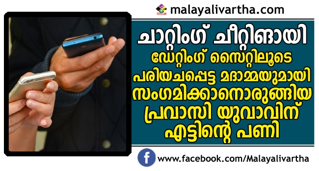 ഡേറ്റിംഗ് സൈറ്റിലൂടെ പരിചയപ്പെട്ട മദാമ്മയുമായി സംഗമിക്കാന് ഒരുങ്ങിയിറങ്ങിയ പ്രവാസി യുവാവിന് കിട്ടിയത് എട്ടിന്റെ പണി. പണം നല്കി സ്ത്രീയുമായി ലൈംഗികബന്ധത്തില് ഏര്പ്പെടാന് ദുബായിലെ ഹോട്ടല് മുറിയില് എത്തിയ ആളിനാണ് പണി കിട്ടിയത്. ഡേറ്റിംഗ് ആപ്പ് വഴി യൂറോപ്യന് യുവതിയുമായി ചാറ്റ് ചെയ്തതിനു ശേഷം ഓഗസ്റ്റില് ദുബായിലെ ഹോട്ടലില് എത്താനായിരുന്നു തീരുമാനം.