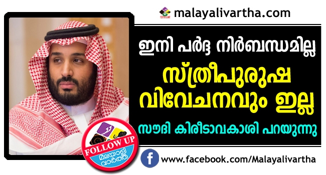 അമേരിക്കന് ചാനലിന് ആദ്യമായി സൗദി കിരീടാവകാശി മുഹമ്മദ് ബിന് സല്മാന് നല്കിയ അഭിമുഖം വൈറലാകുന്നു. കറുത്ത പര്ദ്ദയോ മൂടുപടമോ വേണമെന്ന് നിര്ബന്ധമില്ല, മാന്യമായ വസ്ത്രം ഏതെന്നു സ്ത്രീകള്ക്ക് തന്നെ തെരഞ്ഞെടുക്കാമെന്ന് മുഹമ്മദ് ബിന് സല്മാന് അഭിമുഖത്തില് വ്യക്തമാക്കി. അറബ് മേഖലയിലെ പ്രശ്നങ്ങളിലും, അഴിമതിക്കെതിരെയുള്ള പോരാട്ടത്തിലും നയം വ്യക്തമാക്കുന്ന കിരീടാവകാശി ഇനി മുതല് രാജ്യത്ത് സ്ത്രീപുരുഷ വിവേചനം ഉണ്ടാകില്ലെന്നും പറഞ്ഞു.