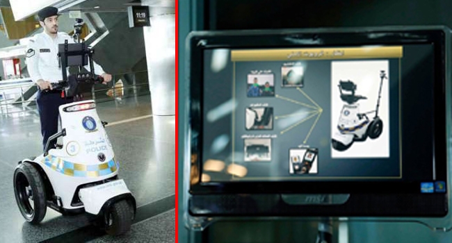 കള്ളലക്ഷണമുള്ള വ്യക്തികൾ മുതൽ കള്ളനോട്ടുകൾ വരെ കണ്ടെത്താനാവുന്ന റോബോട്ട് ഖത്തറില് തന്നെ വികസിപ്പിച്ചെടുത്തതാണ്. സ്കൂട്ടറിന്റെ മാതൃകയിലാണ് ഈ വിരുതനെ നിർമ്മിച്ചിരിക്കുന്നത്.