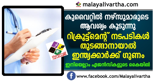 കേരളത്തില്നിന്ന് നോര്ക്കയും ഒഡെപെക്കും ഇന്നലെ വരെ എംബസിക്കു മറുപടി നൽകിയിട്ടുള്ളൂ. മറ്റുള്ള ഏജൻസികൾക്കും കൂടി നാളെവരെ മാത്രമേ അവസരം ലഭിക്കുകയുള്ളു. വിശദീകരണം മന്ത്രാലയത്തിനു തൃപ്തികരമായാല് റിക്രൂട്ട്മെന്റ് നടപടികള് വേഗത്തില് പൂര്ത്തിയാകും. കുവൈത്തില് കൂടുതല് നഴ്സുമാരെ ആവശ്യമുള്ള സാഹചര്യമാണ് നിലവിൽ ഇതനുസരിച്ച് റിക്രൂട്ട്മെന്റ് നടപടികള് തുടങ്ങാനായാല് ഇന്ത്യക്കാര്ക്ക് അത് സുവർണാവസരമാണ്.