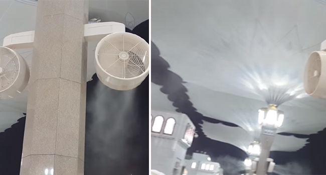 ഹറമിലെ ചുട്ടുപൊള്ളുന്ന വെയിലിലും ഇനി ആശ്വാസിക്കാം; ചൂട് കുറയ്ക്കാൻ വാട്ടര്സ്പ്രേ ഫാനുകൾ സജ്ജമായി