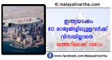 ലോകത്തിന്റെ വിവിധ ഭാഗങ്ങളിലുള്ള 80 രാജ്യങ്ങളില്നിന്നുള്ളവര്ക്ക് ഇനി ഖത്തറിലേക്ക് വരാന് വിസ വേണ്ട. ഇന്ത്യ, അമേരിക്ക, ബ്രിട്ടന്, കാനഡ, ആസ്ട്രേലിയ തുടങ്ങിയവയടക്കമുള്ള രാജ്യങ്ങളില് നിന്നുള്ളവര്ക്ക്...
