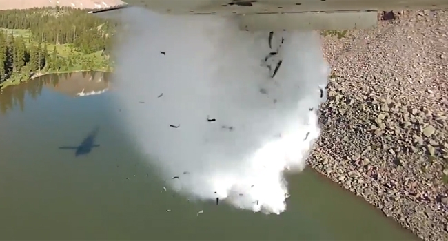 ആകാശത്ത് നിന്ന് മഴപോലെ മത്സ്യങ്ങള് പെയ്തിറങ്ങുന്ന ഒരു തടാകമുണ്ട് അമേരിക്കയിലെ യൂറ്റയില്. യൂറ്റാ തടാകത്തില് മീന് പെയ്തിറങ്ങുന്നത് ആകാശത്തുനിന്ന് വിമാനത്തില് നിന്നാണ് മത്സ്യങ്ങളെ തടാകത്തിലേക്ക് വര്ഷിക്കുന്നത്.