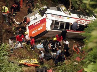 ഇയാള് അമിത വേഗതയില് ബസ് ഓടിച്ചതിനെ തുടര്ന്ന് നിയന്ത്രണംവിട്ട് മറ്റൊരു ബസില് ഇടിക്കുകയായിരുന്നുവെന്ന് പോലീസ് അറിയിച്ചു. റോഡുകളുടെ ശോചനീയാവസ്ഥയും അപകടത്തിന് കാരണമാണെന്നാണ് പറയപ്പെടുത്തുന്നത്. കഴിഞ്ഞമാസം ഇവിടെ ബസ് മറിഞ്ഞ് 14 പേര് മരിച്ചിരുന്നു.