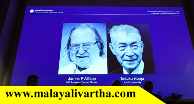 ഈ വർഷത്തെ വൈദ്യശാസ്ത്ര നൊബേല് പുരസ്കാരങ്ങൾ പ്രഖ്യാപിച്ചു. ക്യാന്സര് ചികിത്സാ രംഗത്ത് പുതിയ തരത്തിലുള്ള ചികിത്സാ രീതി കണ്ടുപിടിച്ചതിനാണ് നോബേല്. അമേരിക്കയിലെ ജെയിംസ് പി ആലിസണ്, ജപ്പാനിലെ ടസുകു ഹോഞ്ചോ എന്നിവരാണ് പുരസ്കാരത്തിനർഹരായവർ.