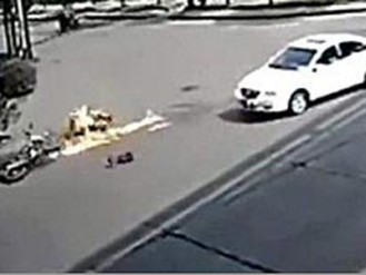 കാറുമായി കൂട്ടിയിടിച്ച് നിലത്തുവീണ ബൈക്ക്യാത്രക്കാരന്റെ ദേഹത്ത് തീപിടിച്ചു. കിഴക്കന് ചൈനയിലെ സീജിയാംഗ് പ്രവിശ്യയിലായിരുന്നു സംഭവം. ഫെങ് കു എന്നയാളാണ് ബൈക്ക് ഓടിച്ചിരുന്നത്. തീപിടിച്ച ശരീരവുമായി റോഡിലൂടെ ഓടിയ അയാളെ ആശുപത്രിയില് പ്രവേശിപ്പിച്ചു. തീപിടിച്ച ശരീരവുമായി റോഡിലൂടെ ഓടിയ അയാളെക്കണ്ട് വഴിയാത്രക്കാര് പേടിച്ച് മാറി. ഇതിനിയില് ചെന് താസോ എന്ന വഴിയാത്രക്കാരന് തന്റെ ജാക്കറ്റൂരി ചെന് ഇയാള്ക്ക് എറിഞ്ഞുകൊടുത്തു. പിന്നീട് നിലത്തുകിടന്ന് ഉരുളാനും ആവശ്യപ്പെട്ടു. ഫെന് അപ്രകാരം ചെയ്തതോടെ തീ അണഞ്ഞു തുടങ്ങി. ട്രാഫിക് പൊലീസിന്റെ സി.സി.ടി.വി കാമറയില് അപകടദൃശ്യങ്ങള് പതിഞ്ഞിരുന്നു.